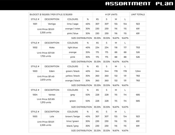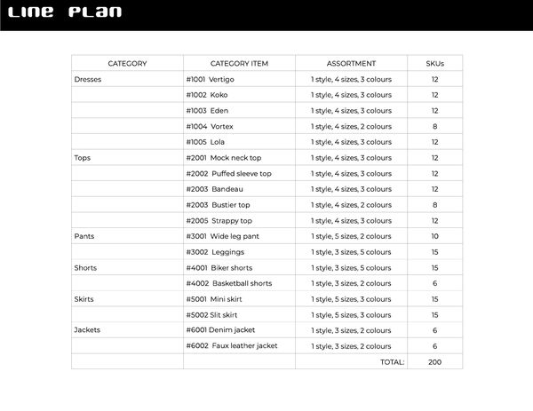 For Private Label Management I had to create a s/s capsule collection for a fictional brand and make a catalogue complete with: target market analysis, the capsule collection, a cost sheet, a price comparison chart, a line plan, an assortment plan, purchase orders, and a quality control checklist.